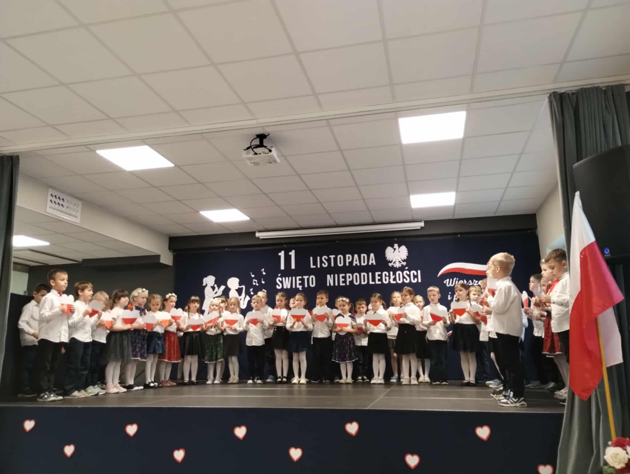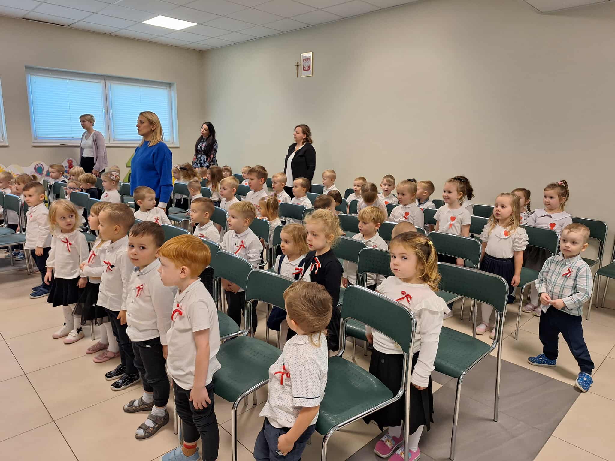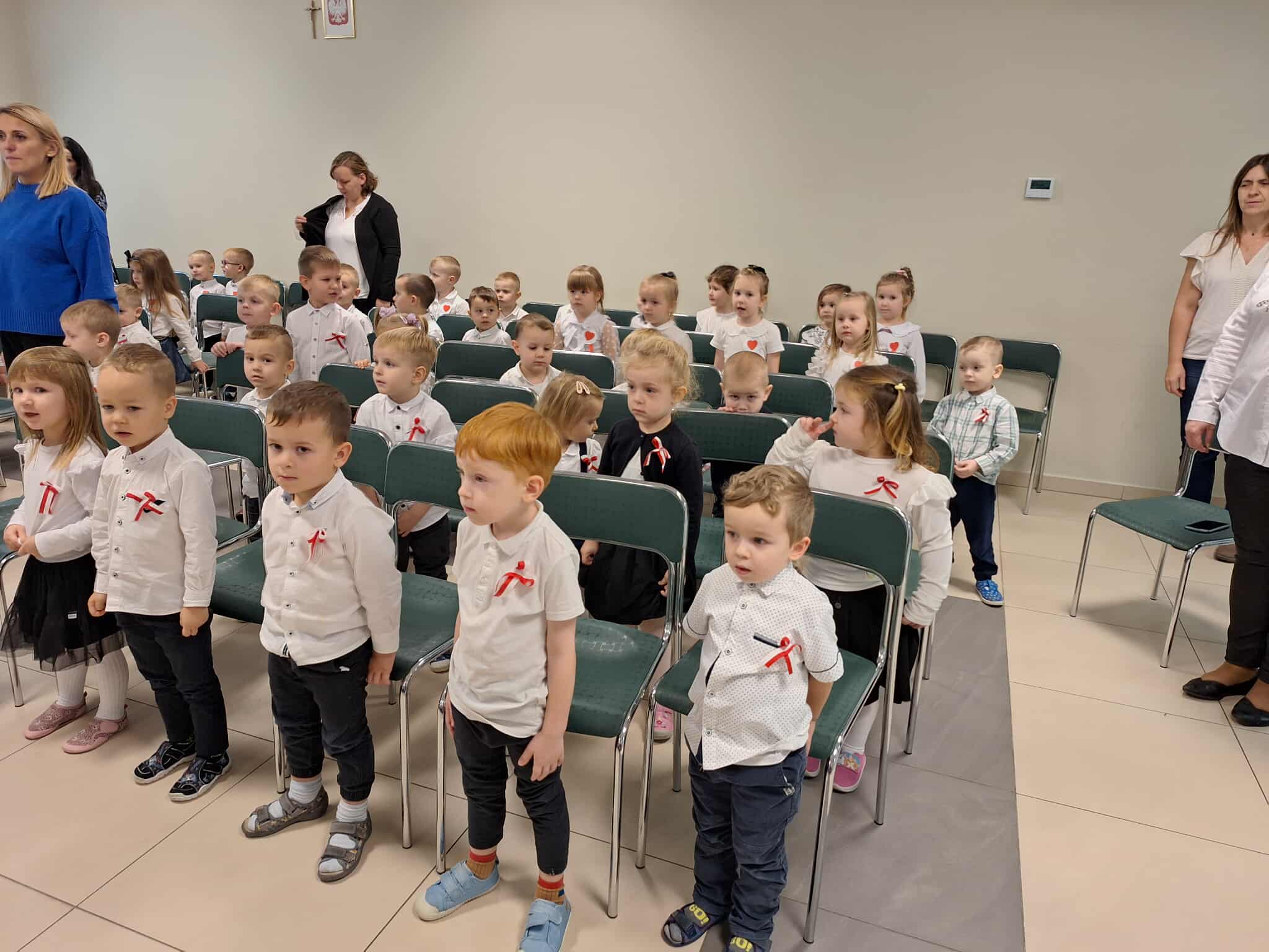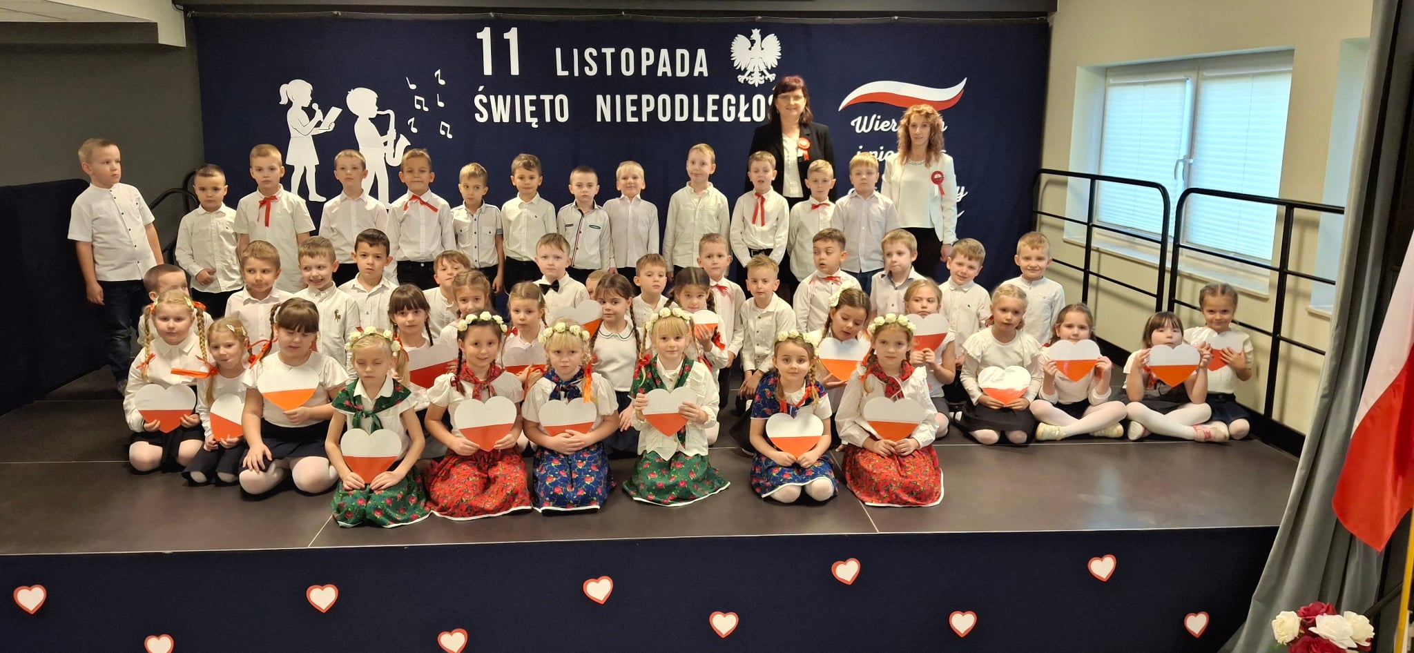 Dnia 13 listopada 2025 r. w naszym przedszkolu odbyła się Akademia z okazji Narodowego Święta Niepodległości. W uroczystości wystąpiły dzieci z grup Tropiciele oraz Żabki, które z dumą zaprezentowały przygotowany program artystyczny. Przedszkolaki z ogromnym zaangażowaniem recytowały wiersze, śpiewały pieśni patriotyczne oraz uczestniczyły w inscenizacjach, wprowadzając wszystkich w podniosły i wzruszający nastrój. Występ dzieci spotkał się z bardzo ciepłym przyjęciem. Widzowie z uznaniem podziwiali ich odwagę, talent i starania włożone w przygotowanie występu. Serdeczne gratulacje składamy naszym małym artystom, a podziękowania kierujemy do Rodziców za pomoc w przygotowaniu dzieci oraz za piękne stroje, które podkreśliły uroczysty charakter wydarzenia. Zachęcamy do obejrzenia nagrania z akademii, dostępnego pod poniższym linkiem. Zapraszamy do wspólnego przeżywania tej wyjątkowej chwili!