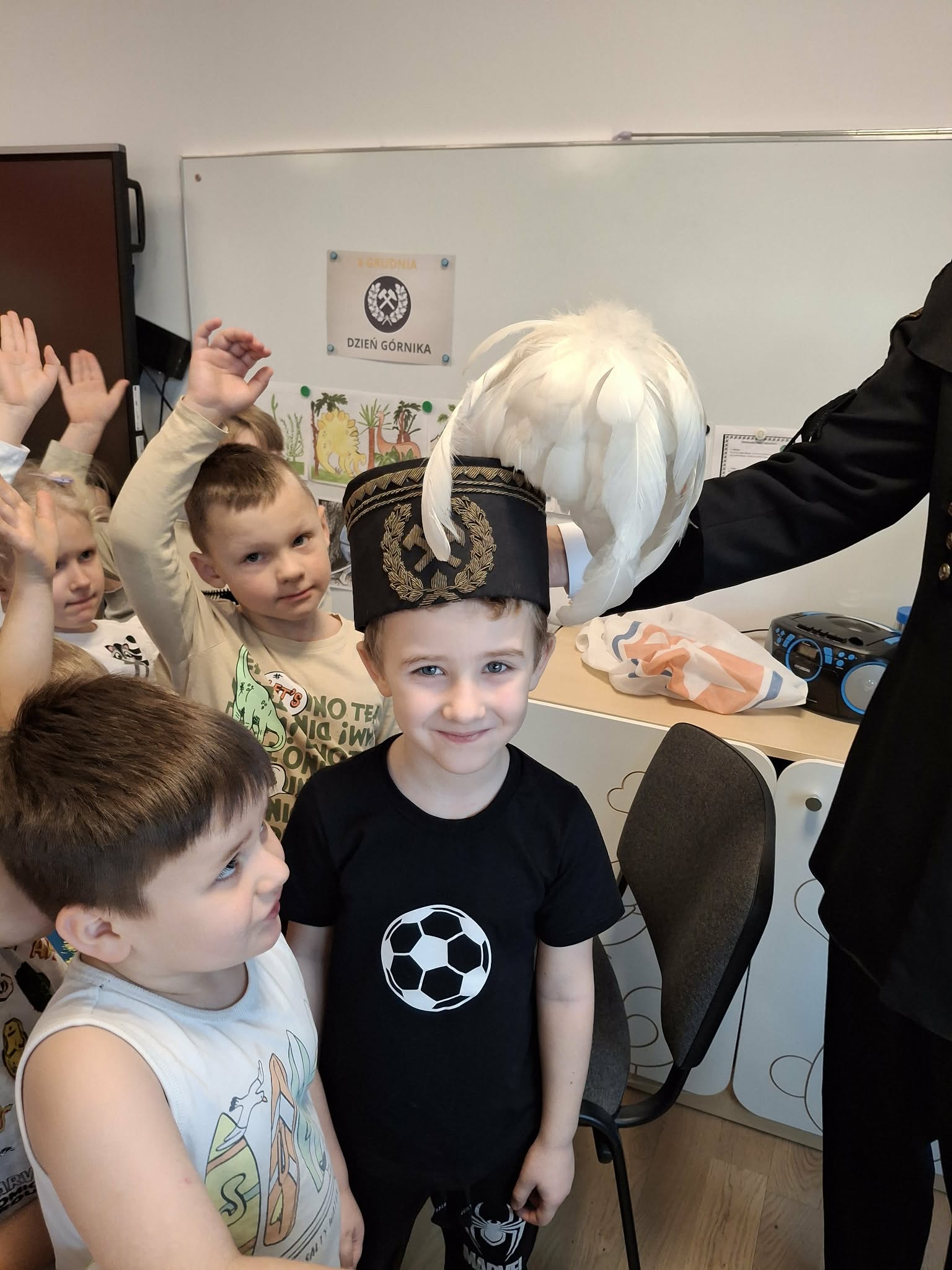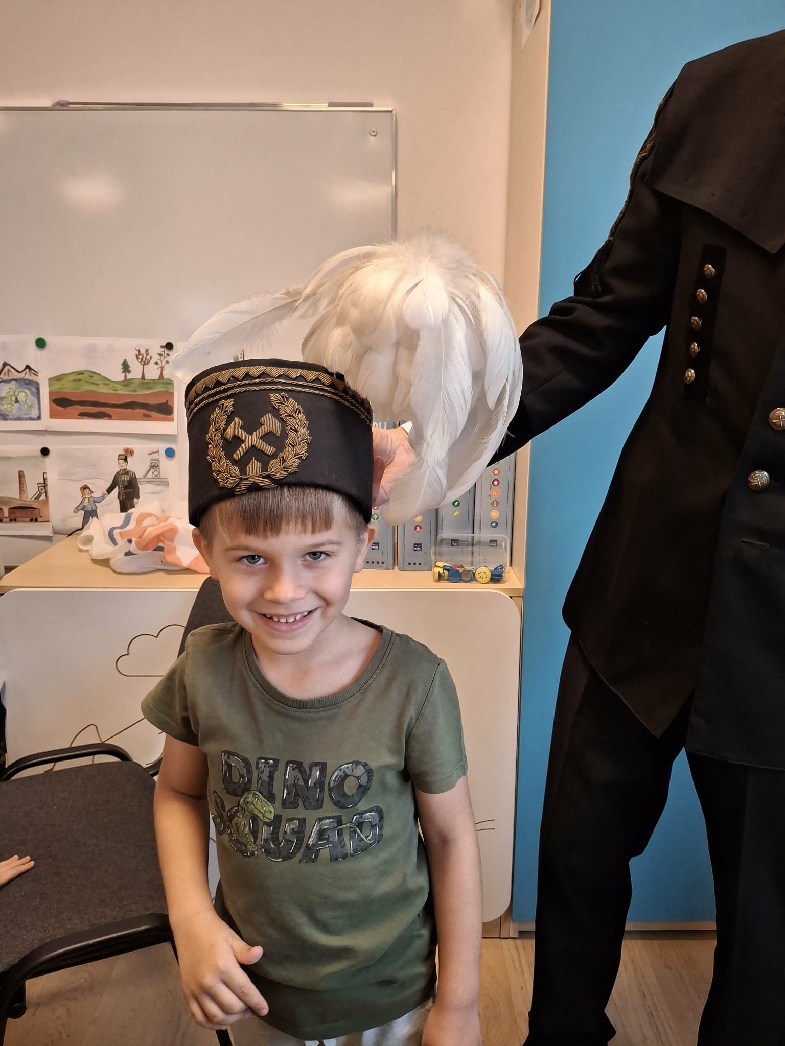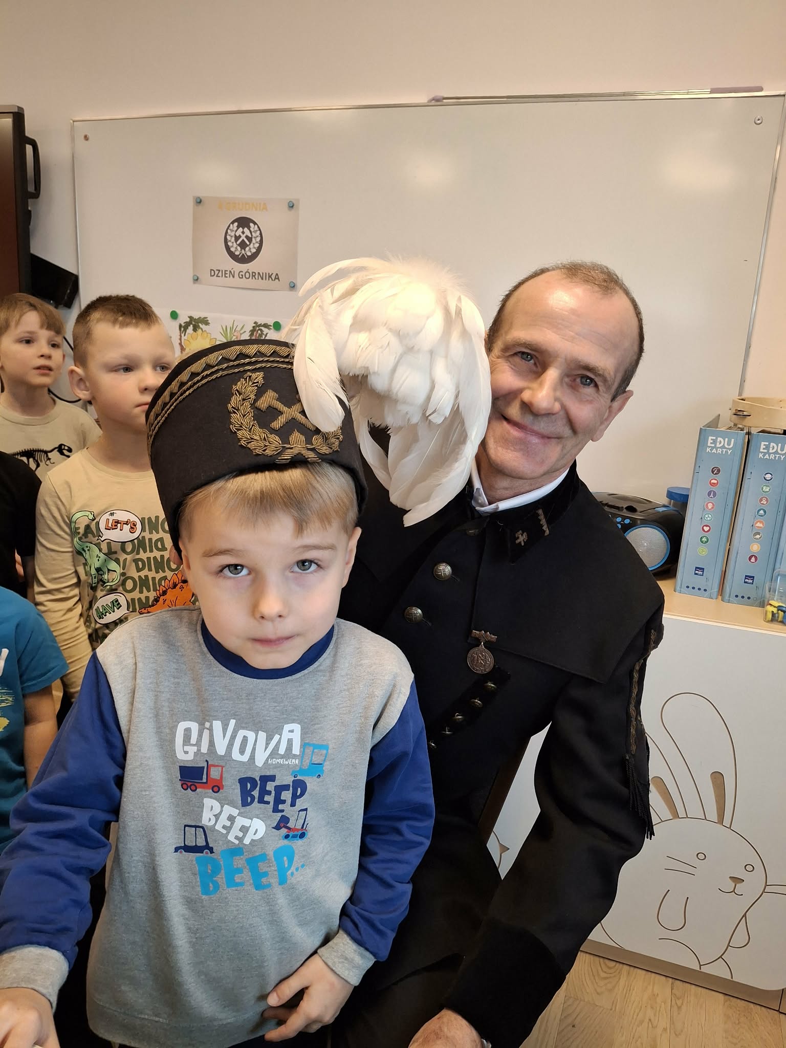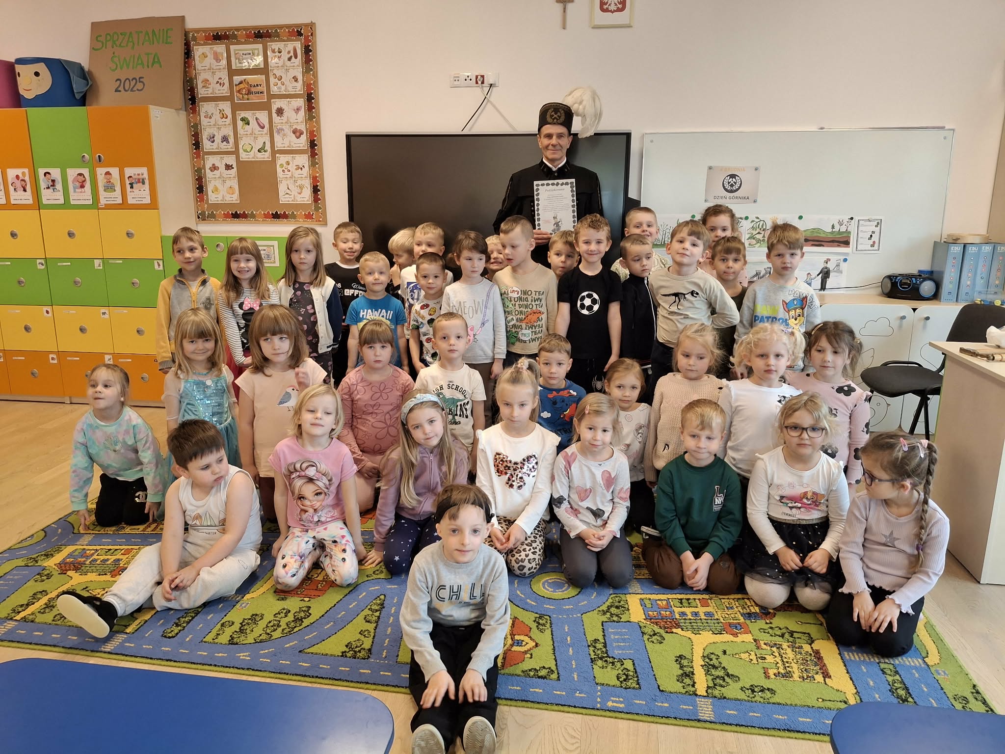 4 grudnia obchodzimy Dzień Górnika, potocznie zwany Barbórką. Chcąc przybliżyć dzieciom trudną i odpowiedzialną pracę w kopalni, zaprosiliśmy do naszego przedszkola pana Andrzeja Szubę, emerytowanego górnika. Nasz gość, ubrany w mundur galowy, opowiedział dzieciom o maszynach górniczych, o codziennej pracy oraz o roboczym i galowym stroju górnika. Spotkanie było bardzo pouczające i przybliżyło dzieciom postać górnika i jego ciężką pracę. Na zakończenie dzieci podziękowały niecodziennemu gościowi za wizytę, złożyły życzenia i wręczyły pamiątkowe podziękowanie.