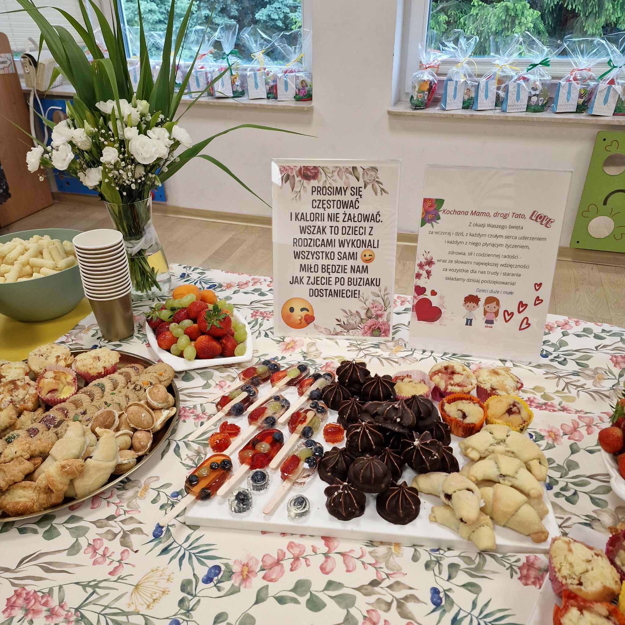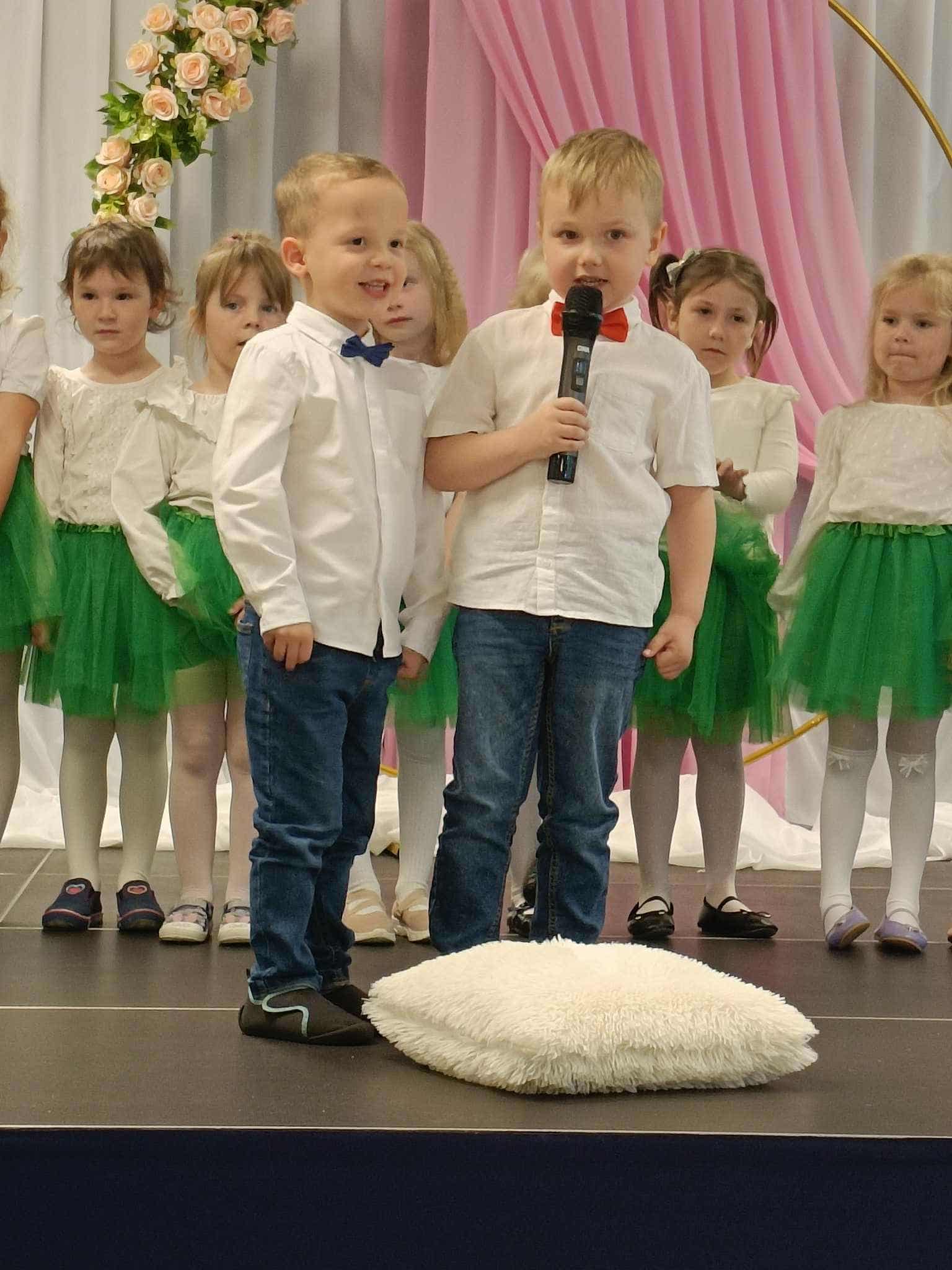W naszym przedszkolu odbyła się wyjątkowa uroczystość z okazji Dnia Mamy i Taty. Było to wzruszające i pełne radości wydarzenie, podczas którego dzieci z ogromnym zaangażowaniem zaprezentowały program artystyczny przygotowany specjalnie dla swoich najukochańszych rodziców. Na scenie rozbrzmiewały piosenki, recytowane były wiersze pełne miłości i wdzięczności, a taneczne występy małych artystów wywoływały uśmiech na twarzach i łzy wzruszenia w oczach. Każde dziecko włożyło całe serce w swój występ – a efekty były naprawdę zachwycające! Po części artystycznej dzieci wręczyły przygotowane upominki, które sprawiły wiele radości zaproszonym gościom. Uroczystość zakończył wspólny poczęstunek, zorganizowany dzięki ogromnemu zaangażowaniu i uprzejmości rodziców. Był to wspaniały czas integracji, rozmów i wspólnego świętowania w ciepłej, rodzinnej atmosferze. To właśnie takie chwile tworzą najpiękniejsze wspomnienia – nie tylko dla dzieci, ale i dla całej naszej przedszkolnej społeczności.