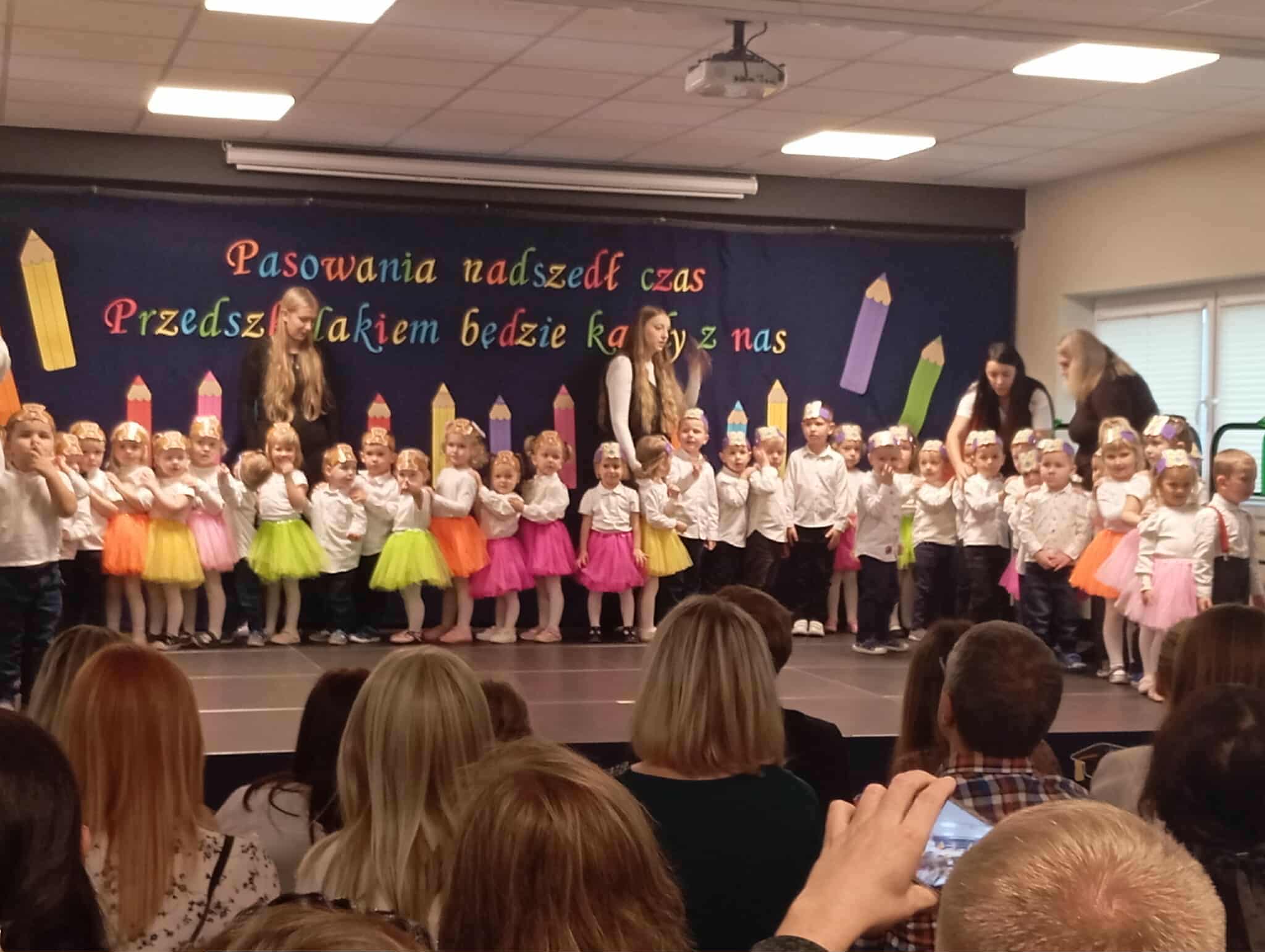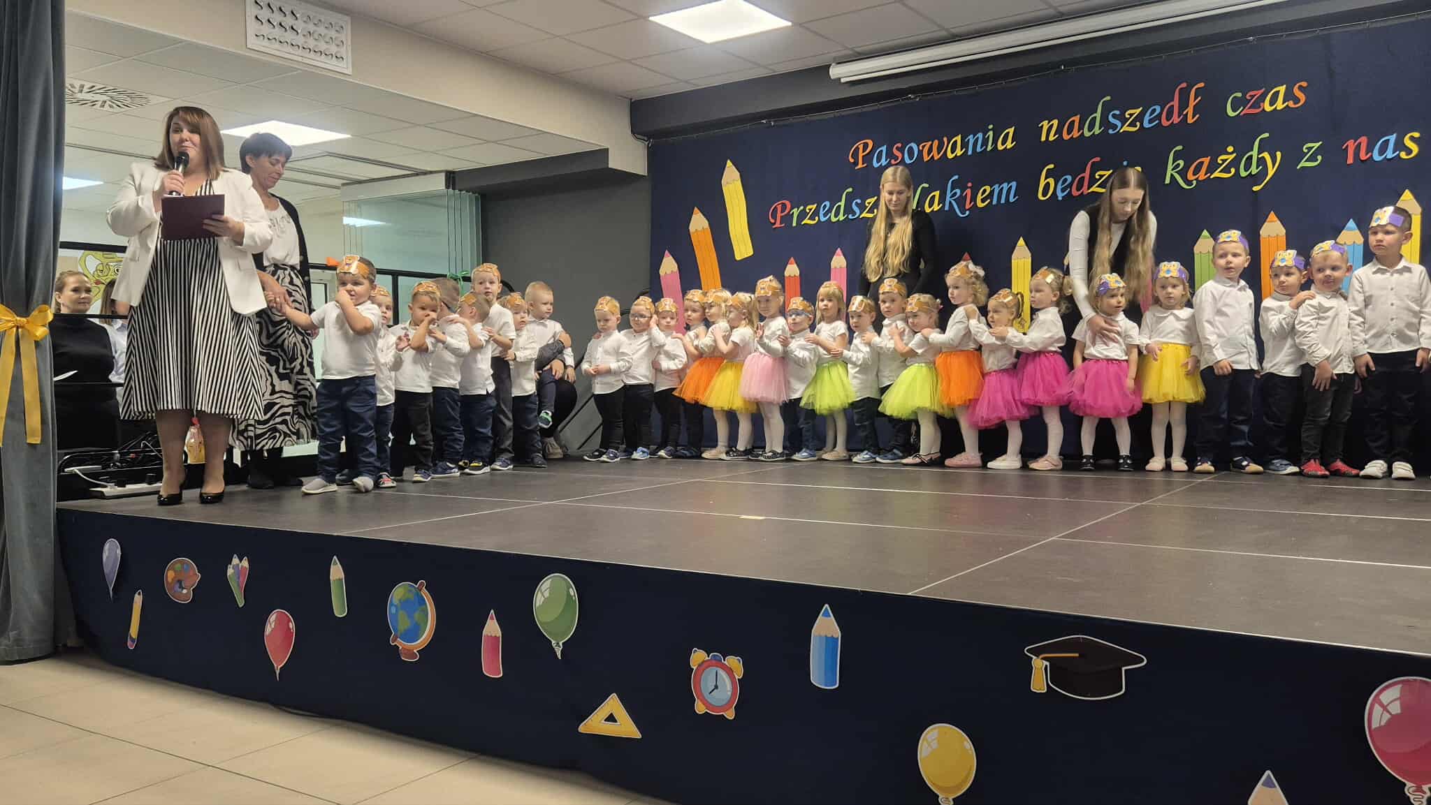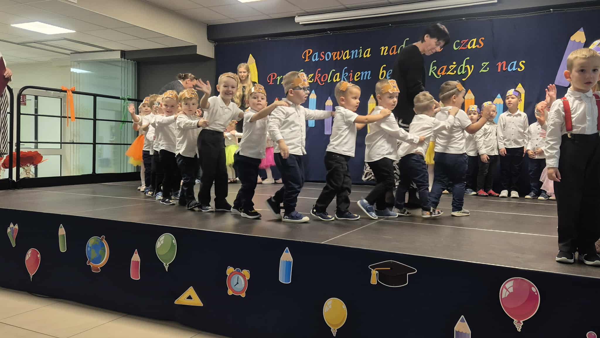 Dnia 28 października 2025 r. w naszym przedszkolu odbyła się wyjątkowa uroczystość – Pasowanie na Przedszkolaka. W wydarzeniu uczestniczyła Pani Dyrektor oraz rodzice dzieci z grup „Misie” i „Motylki”. Sala widowiskowa była pięknie udekorowana, a na tle sceny widniał napis: „Pasowania nadszedł czas – przedszkolakiem będzie każdy z nas!”