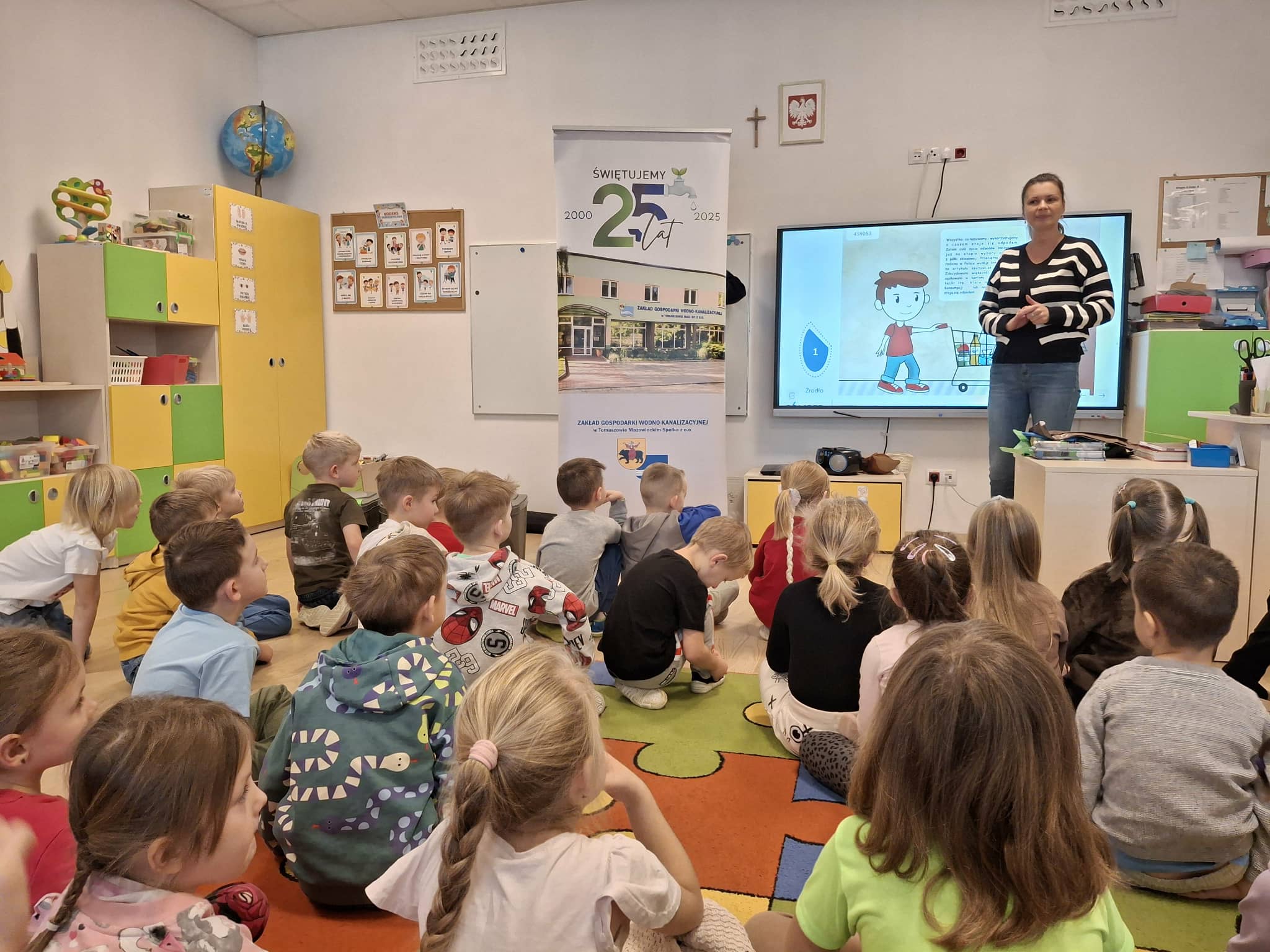 24 listopada w naszym przedszkolu odbyły się zajęcia poprowadzone przez pracowników Zakładu Gospodarki Wodno-Kanalizacyjnej w Tomaszowie Mazowieckim poświęcone zasadom prawidłowej segregacji odpadów. Spotkanie miało charakter zarówno teoretyczny, jak i praktyczny, dzięki czemu dzieci mogły nie tylko usłyszeć o właściwych nawykach, ale także je przećwiczyć. Podczas zajęć zaprezentowano film edukacyjny ukazujące drogę odpadów oraz znaczenie segregacji dla środowiska. Po części teoretycznej dzieci wzięły udział w ćwiczeniach praktycznych, które polegały na przyporządkowaniu przygotowanych odpadów do odpowiednich pojemników. Przedszkolaki z zaangażowaniem i widoczną satysfakcją podejmowały próby samodzielnego sortowania, a prowadzący na bieżąco wspierali je w utrwalaniu zasad. Zajęcia przebiegły w przyjaznej atmosferze, a dzieci zdobyły cenną wiedzę. Dzięki takim inicjatywom najmłodsi uczą się odpowiedzialności wobec środowiska i poznają znaczenie dbałości o wspólne dobro.