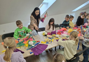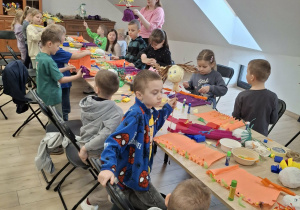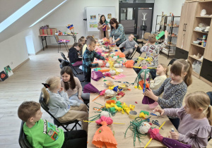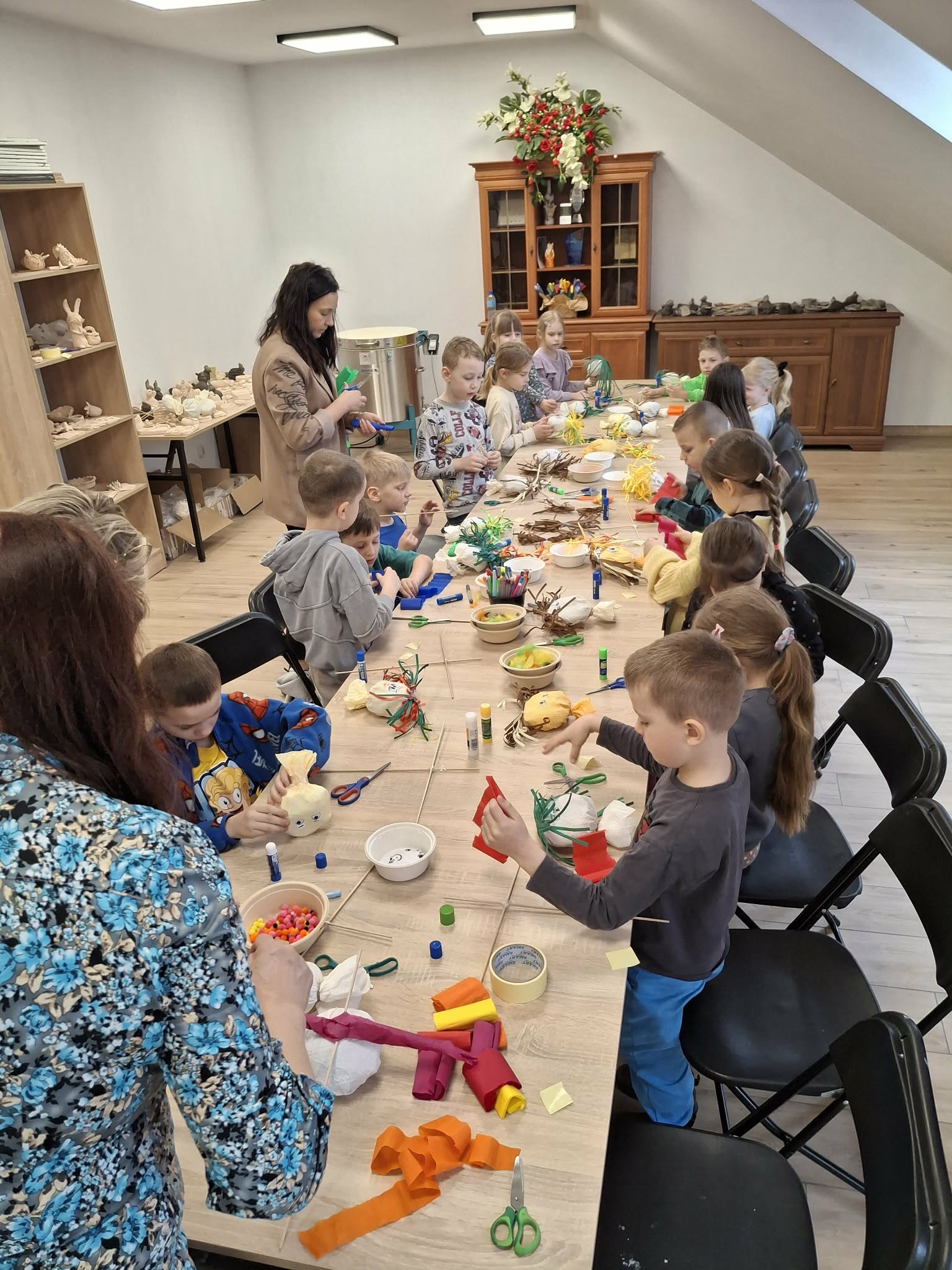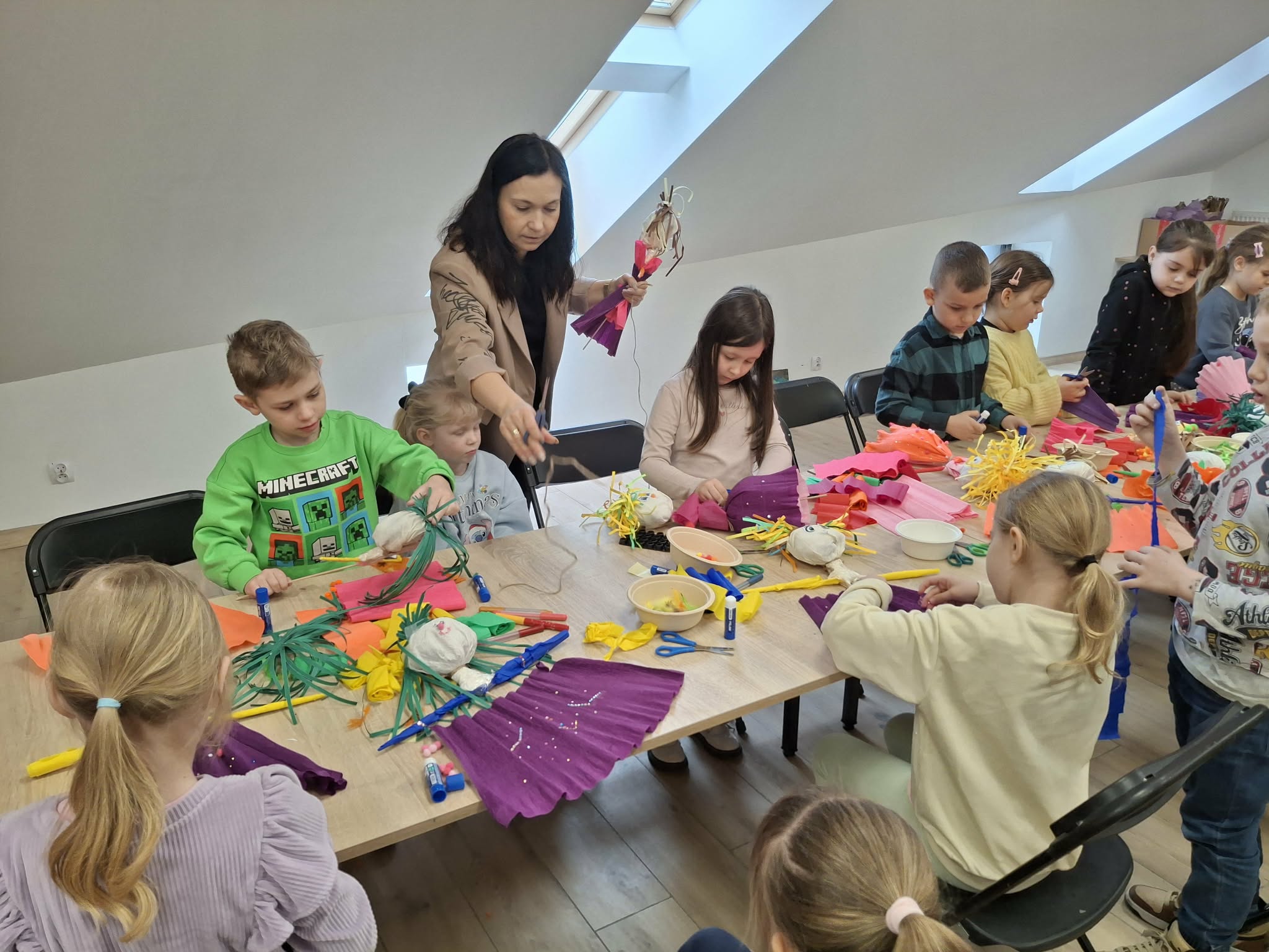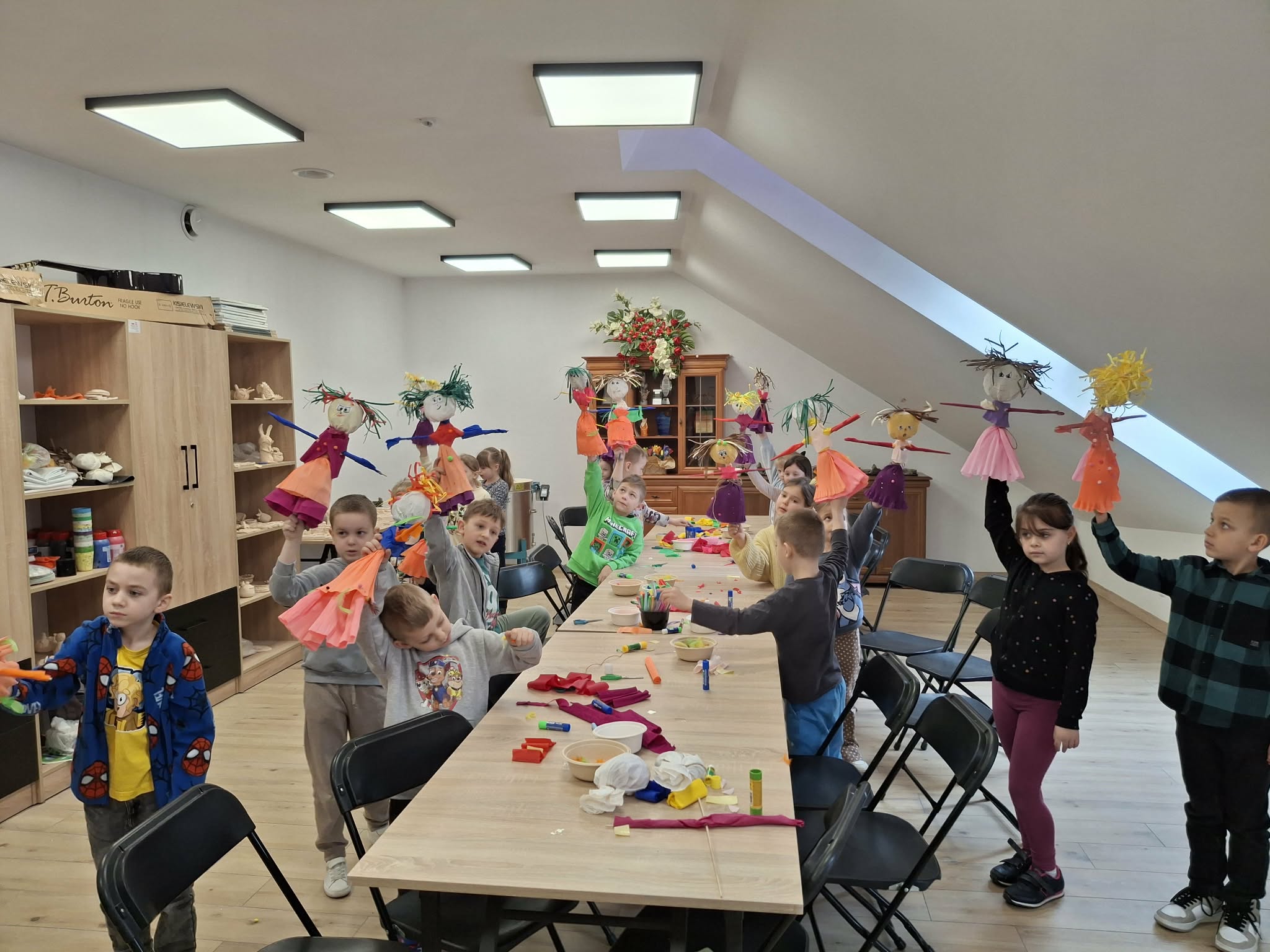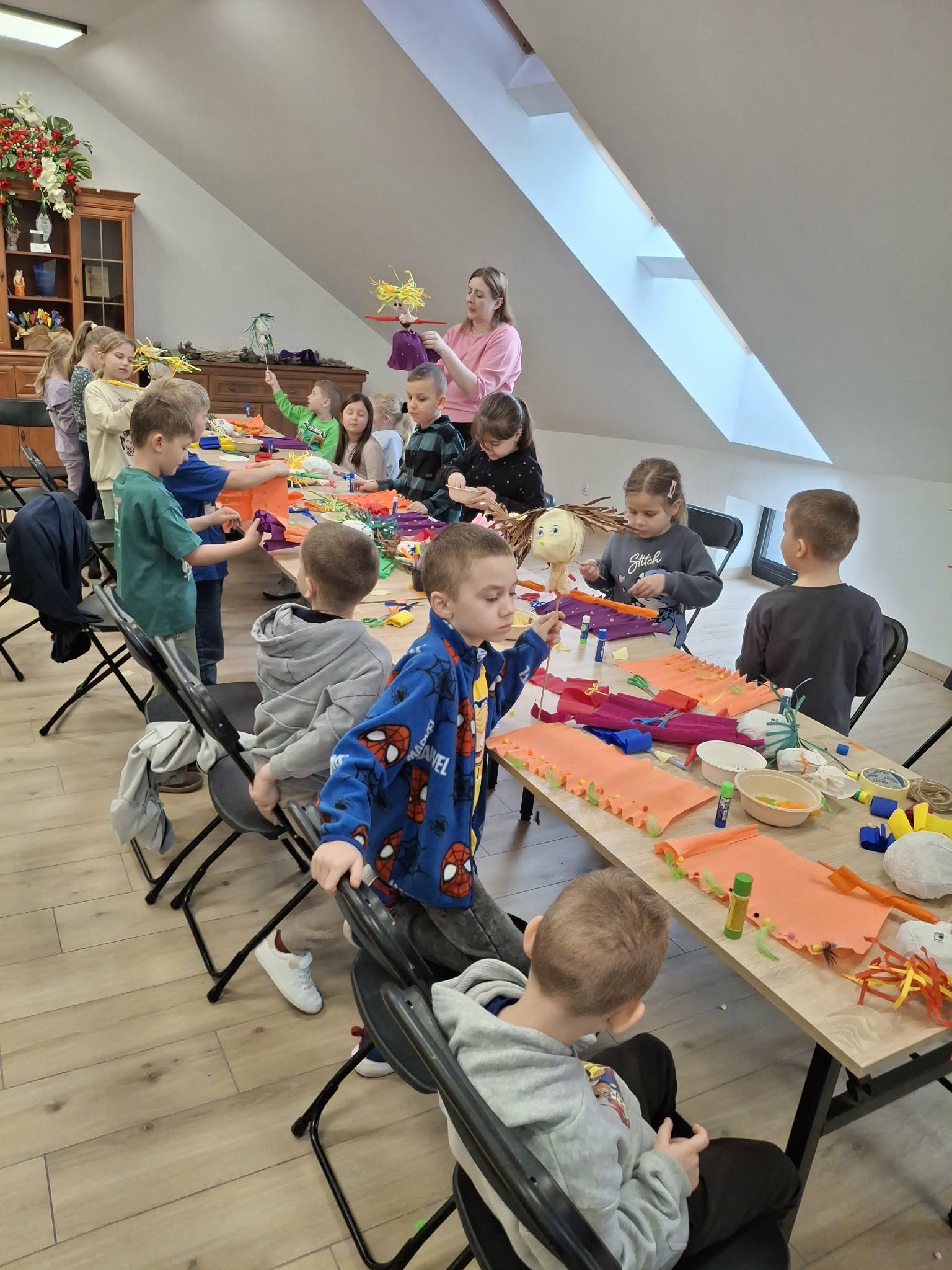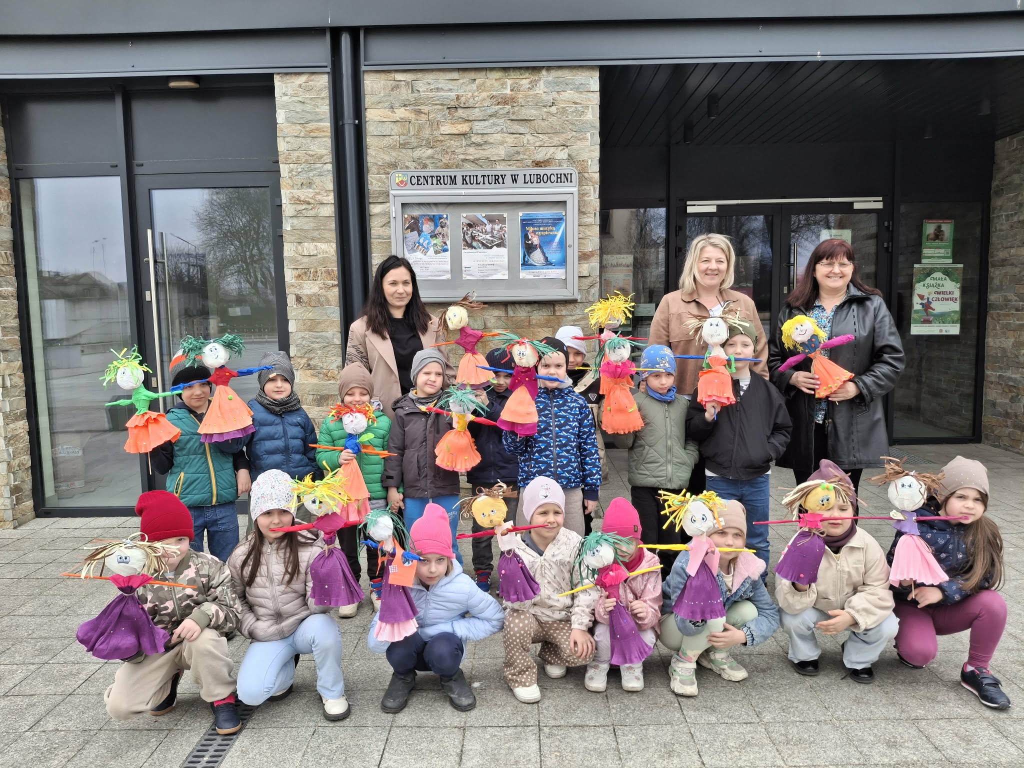 W dniu 20.03.2026r. dzieci z grupy 6-latków - Żabki uczestniczyły w warsztatach plastycznych w Gminnym Centrum Kultury w Lubochni. Tematem zajęć było wykonanie tradycyjnej Marzanny – symbolu odchodzącej zimy. Podczas warsztatów dzieci z dużym zaangażowaniem tworzyły swoje kukły, wykorzystując różnorodne materiały plastyczne, takie jak bibuła, wełna, gazety, patyczki, sznurki oraz tkaniny. Praca twórcza sprawiła wszystkim wiele radości i była doskonałą okazją do rozwijania wyobraźni oraz zdolności manualnych. Dzieci poznały również znaczenie tradycji związanej z pożegnaniem zimy i powitaniem wiosny. Zajęcia przebiegły w miłej i twórczej atmosferze, a efektem pracy były piękne i pomysłowe Marzanny. Serdecznie dziękujemy p. Dyrektor Justynie Łomża oraz paniom Marcie Adamiec i Agnieszce Pierzchała - pracownikom Gminnego Centrum Kultury w Lubochni za przygotowanie i przeprowadzenie inspirujących warsztatów.